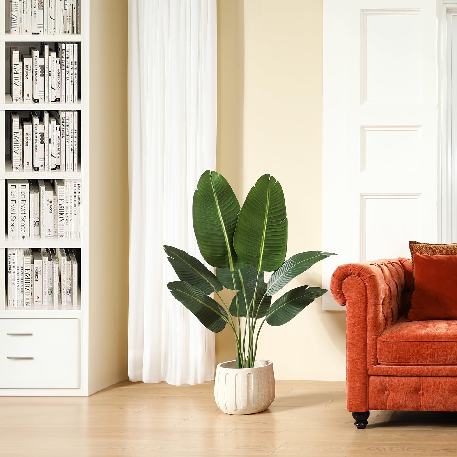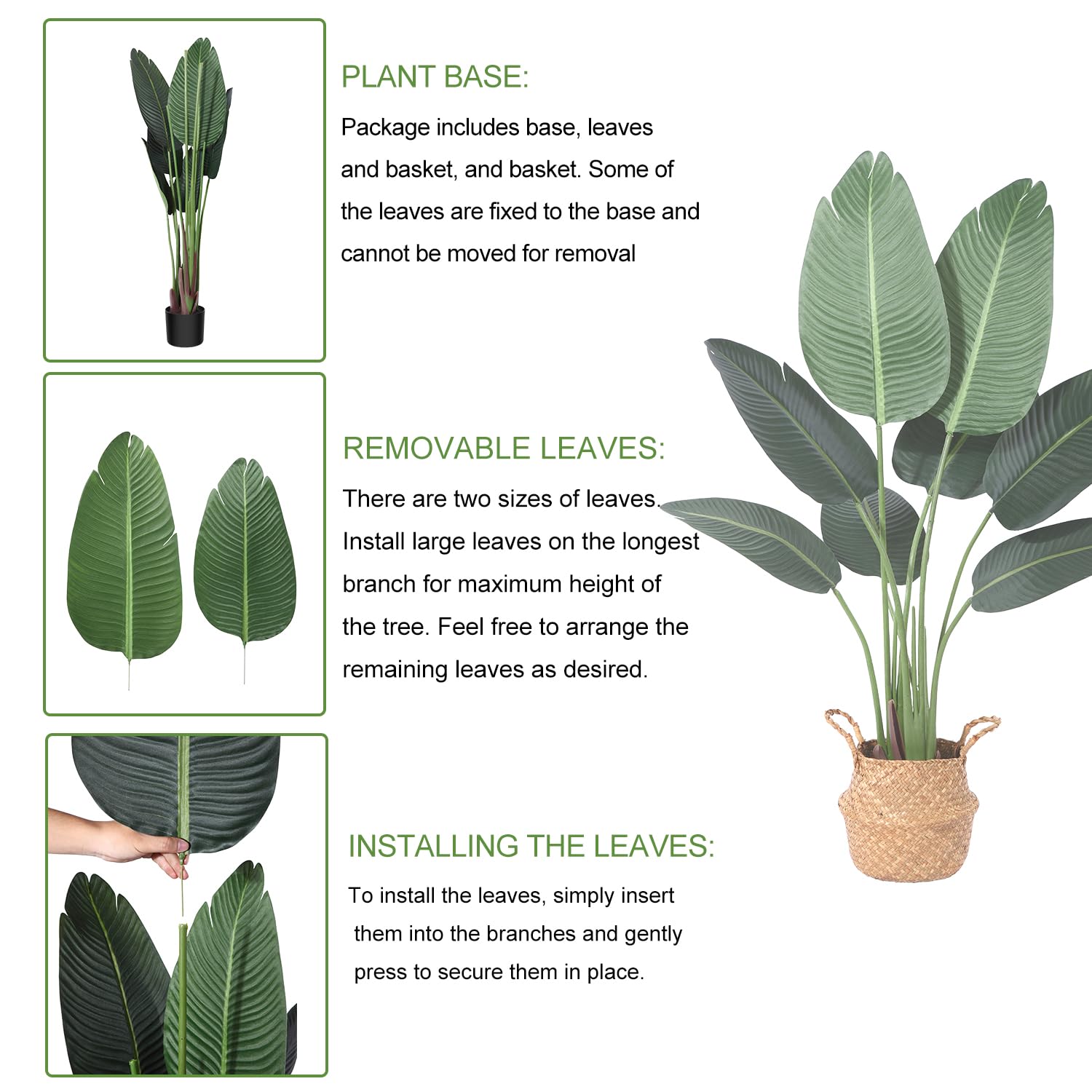 Artificial Bird of Paradise Plant in Pot, Tall Fake Tree with Woven Basket.
