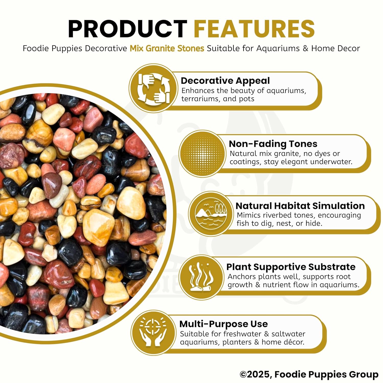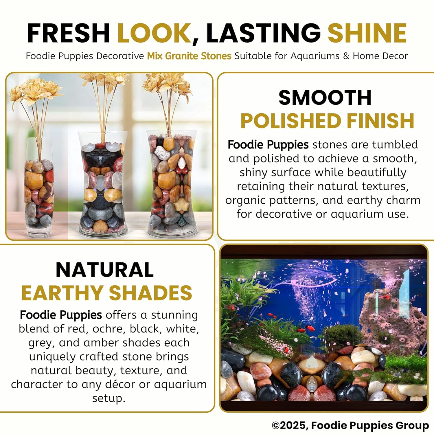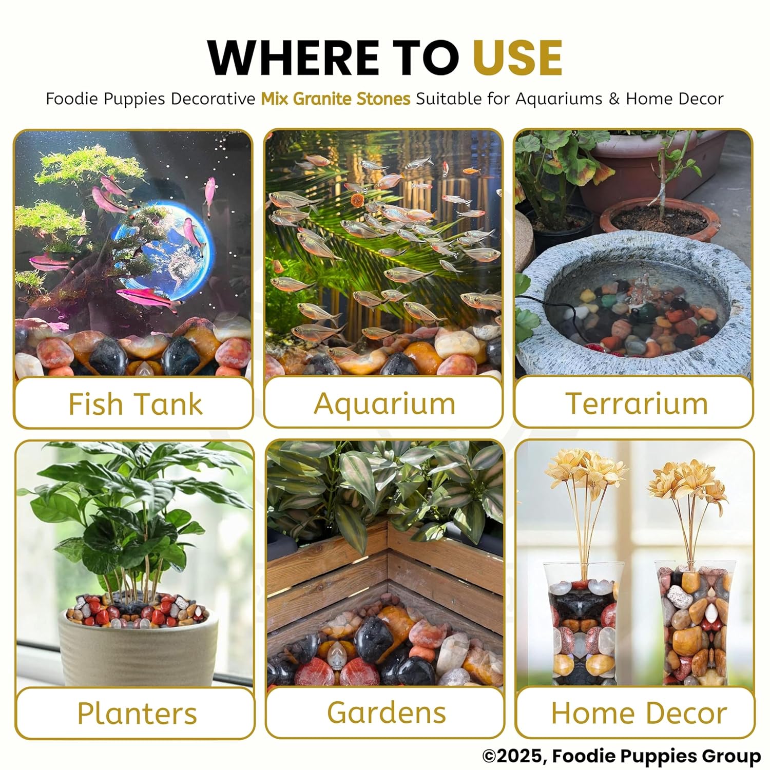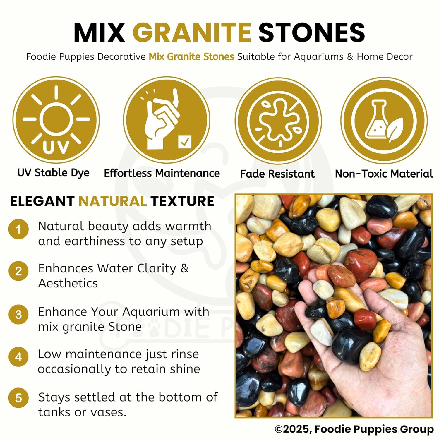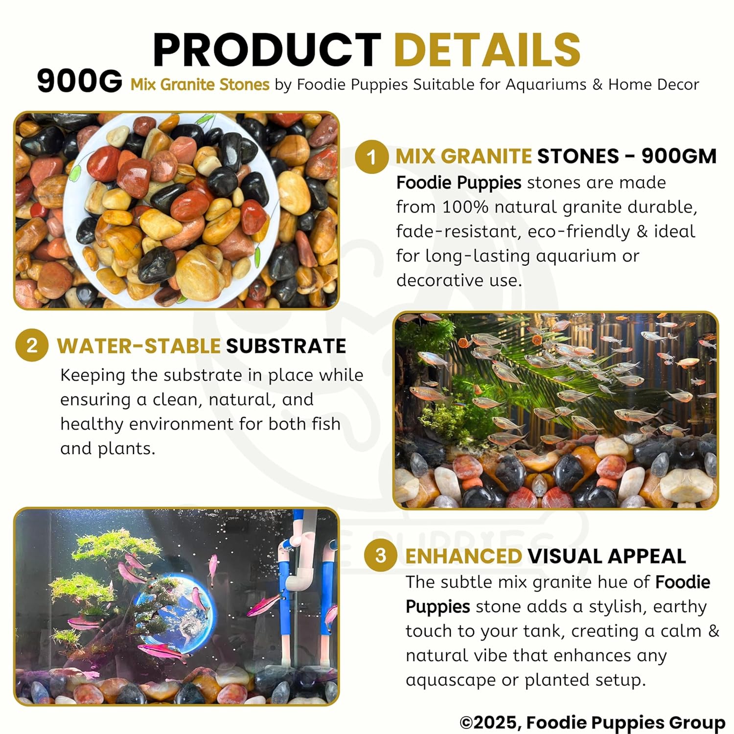 Foodie Puppies Natural Polish Mix Stone Pebbles – (900gm) Mix Granite Stone Decorative Substrate for Aquariums, Fish Bowls, Turtle Tanks, Terrariums, Succulents, Garden Pots.